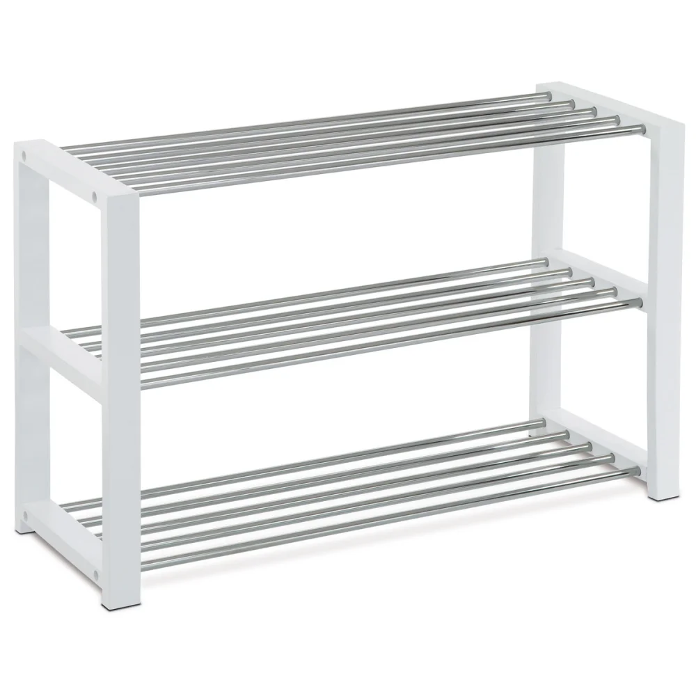 Tento 3-polícový botník QUINCY 12 nabízí tři kovové police pro snadné uložení bot různých velikostí. Konstrukce kombinuje masiv a kovové police a bílo-chromové provedení působí moderně a stylově.