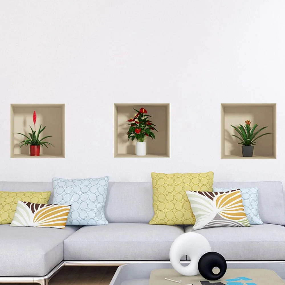 Oživte svůj interiér s touto sadou třech samolepek s unikátním 3D efektem, které nejenže slouží jako dekorace, ale zároveň mohou nahradit i malé úložné prostory nebo police, aniž by bylo nutné vrtání. Tyto samolepky jsou navrženy tak, aby působily téměř nepoznatelně jako skutečná dekorace a přitom poskytují výrazný vizuální efekt. Vyrobeny z kvalitního vinylu, který se snadno aplikuje a neulpívají na něm žádné bubliny, jsou ideální pro rychlou úpravu vašeho prostoru. Tento set je skvělou volbou pro ty, kdo chtějí snadno a bez námahy dodat svému domovu originální vzhled.