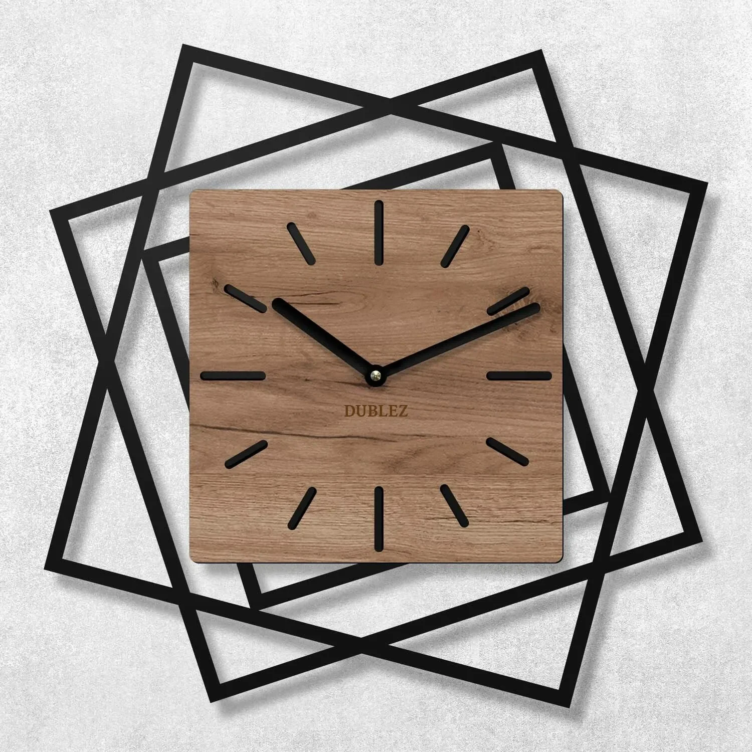 Proměňte svůj domov či kancelář v oázu stylu a elegance s unikátními 3D dřevěnými nástěnnými hodinami. Černý geometrický rám harmonicky ladí s vnitřním designem dle vašeho výběru, což z těchto hodin činí vysoce atraktivní dekorativní prvek.