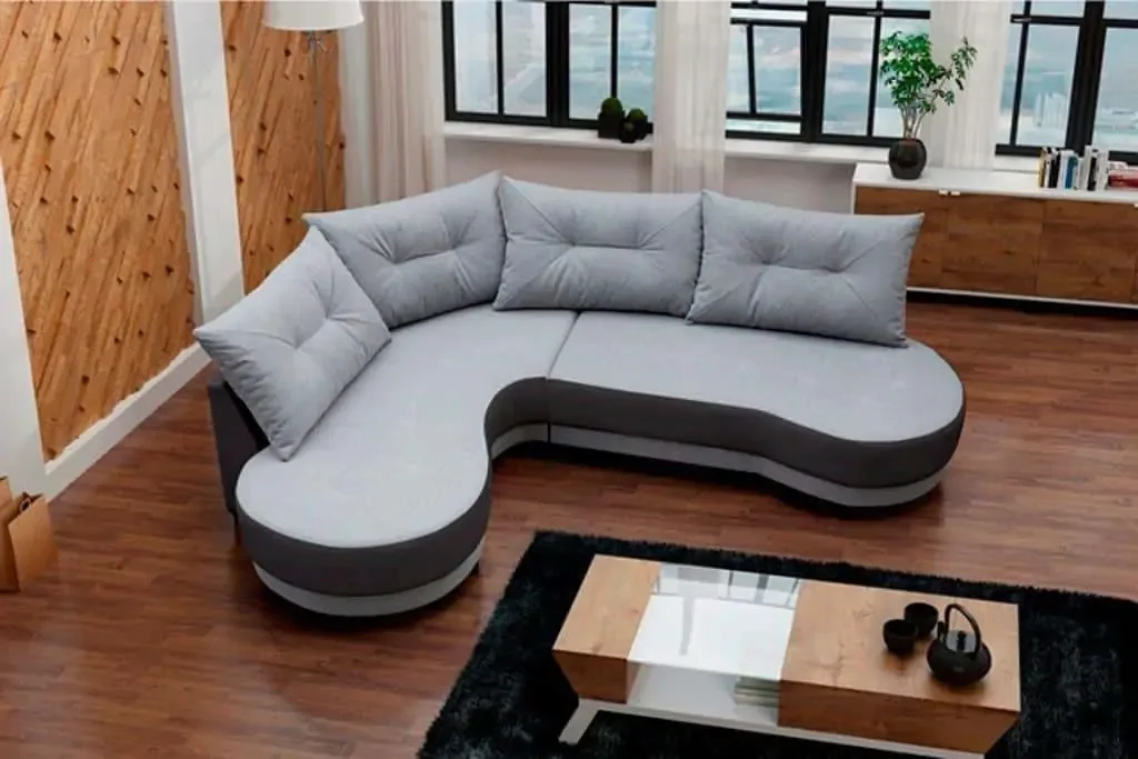 Rohová sedací souprava Abbey zaujme netradičním zaobleným tvarem, který ji výrazně odlišuje od klasických i moderních sedaček. Je elegantní, pohodlná a bez problémů se stane ozdobou každého interiéru.