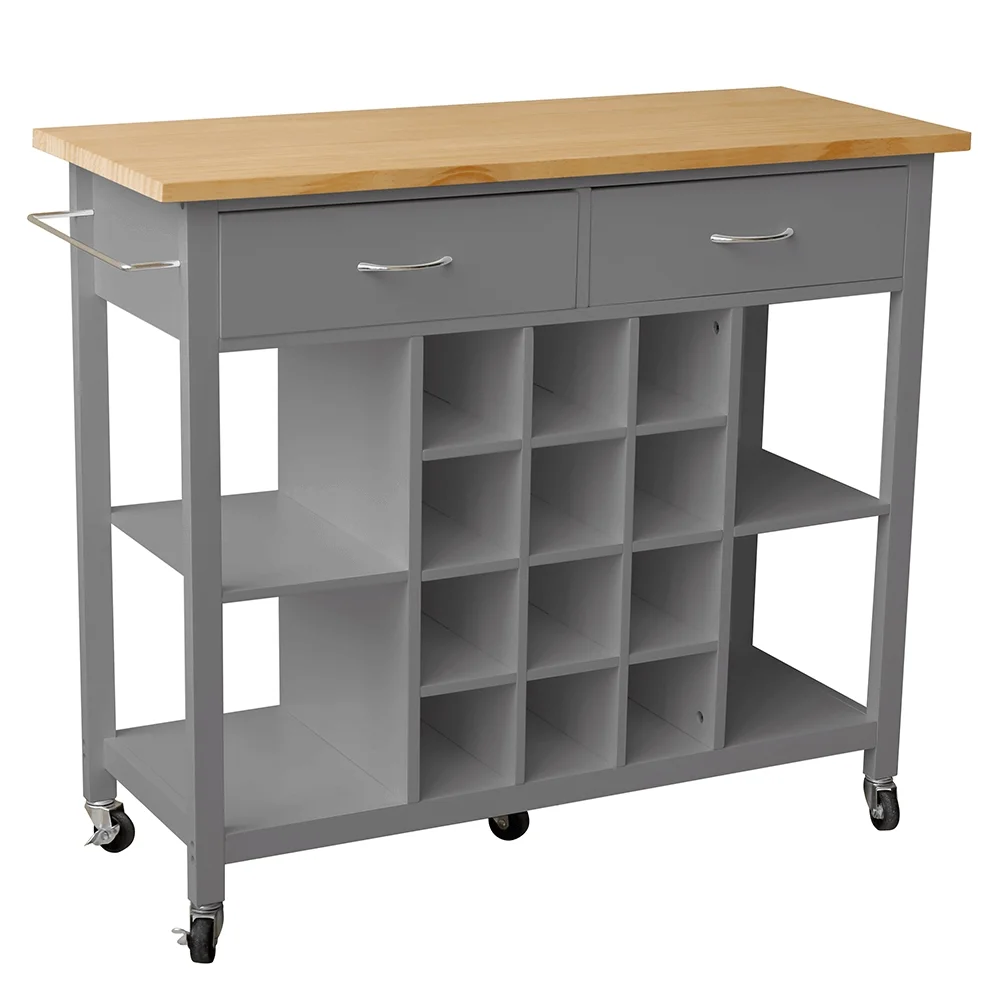 Už nikdy nebudete lovit nádobí v kuchyni během večera — tento servisní vozík vám vše dopřeje po ruce a umožní soustředit se na hosty. Robustní konstrukce kombinuje tmavě šedou konstrukci s vrchní deskou z přírodního borového dřeva, čímž vzniká nadčasový a pevný doplněk do každého prostoru.