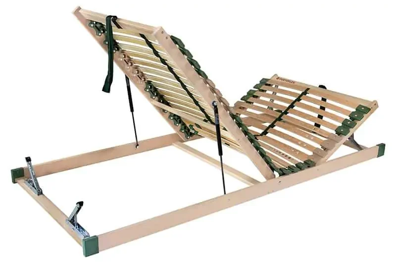 Speciálně uložené vyklápěcí pouzdra zajišťují vyšší nosnost a odolnost vůči prudkému zatížení. Lamely, kterých je 28, jsou rozděleny do 7 anatomických zón a flexibilně reagují na pohyb těla, čímž podepřou každou část těla podle potřeby. V ramenní oblasti je poskytována zesílená opora, která usnadňuje spaní na boku a šetří páteř. Středový popruh zvyšuje stabilitu rámu a pomocí posuvných objímek lze upravit tuhost bederní části. Lamely jsou opatřeny fólií, která zabraňuje pronikání vlhkosti a usnadňuje údržbu. K dispozici jsou různé velikosti pro vaše potřeby.