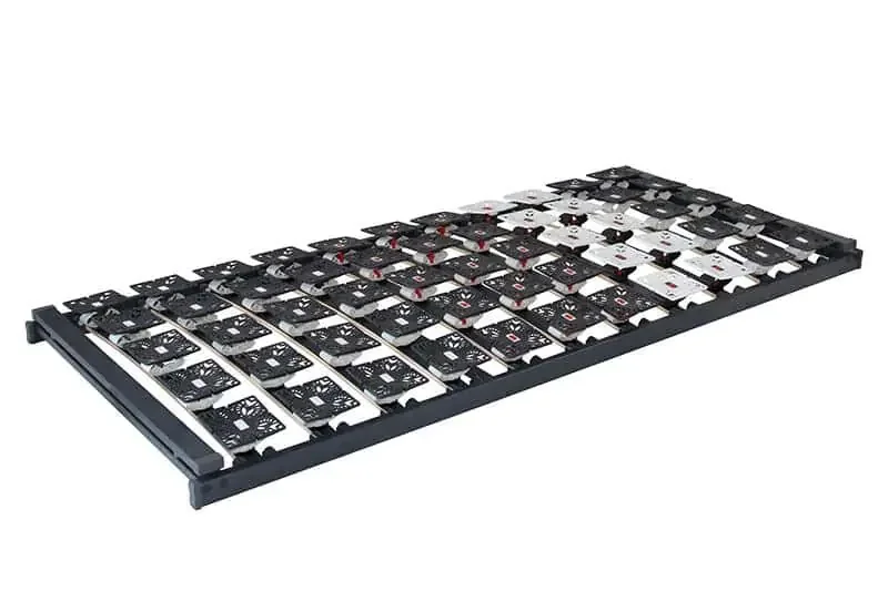 Jedinečný rošt Varion II od značky Ahorn nabízí netradiční vzhled a špičkovou podporu díky výkyvným talířům, které reagují na tlak a přesně kopírují tvar těla. Talíře se mohou pohybovat ve všech směrech a jejich individuálně nastavitelná tuhost umožňuje komfortní nastavení v ramenní i bederní zóně podle vašich proporcí. Profilované lamely zlepšují prodyšnost matrace a zvyšují hygienu lůžka, zatímco dřevěný rám je opatřen fólií bránící vlhkosti a vzniku bakterií a plísní. Přídavná lišta rovnoměrně podpírá matraci po celé ploše a předchází deformaci okrajů, čímž prodlužuje její životnost. K dispozici je několik rozměrů, včetně varianty 200×120 cm, abyste našli ideální podporu pro své lůžko. Tento rošt je navíc vhodný pro páry i osoby s rozdílnými potřebami pohybu během noci a díky své konstrukci nabízí dlouhou životnost lůžka.