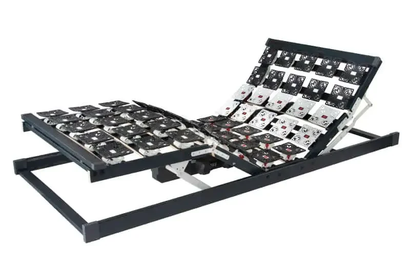 Unikátní rošt Varion si vybuduje své místo díky netradičnímu vzhledu a pokročilé konstrukci lehací plochy, která se dokonale přizpůsobí tělu. Motorový mechanismus umožňuje samostatné polohování hlavy i nohou a díky paměti lze uložit oblíbenou polohu pro rychlou změnu. Z tlačítka FLAT jednoduše vypnete polohu a rošt se vrátí do výchozího nastavení, což usnadňuje vstávání a údržbu matrace. Lehací plocha je tvořena výkyvnými talíři, které rovnoměrně podepírají tělo a reagují na jeho zátěž ve všech směrech, zatímco nastavitelná tuhost zón v rameni a bederní oblasti poskytuje individuální komfort. Profilované talíře zároveň zvyšují prodyšnost matrace, čímž podporují hygienu lůžka. Dřevěný rám je opatřen fólií, která chrání proti vlhkosti a prodlužuje životnost roštu, a dodatečná lišta pomáhá udržet matraci rovnoměrně podepřenou po celé ploše. Madlo usnadňuje manipulaci a zajišťuje stabilní polohování. Tento rošt je dodáván výhradně s bezšňůrovým dálkovým ovládáním, které umožňuje pohodlné ovládání přímo z postele.