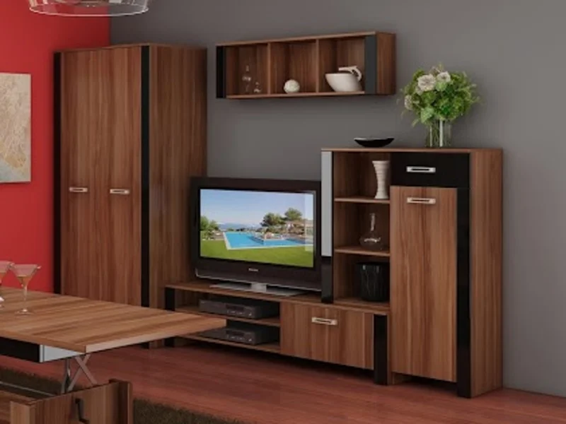 AKIVIDU 3 – obývací stěna v provedení švestka/černý lesk, která do interiéru vnáší moderní vzhled. Korpus je vyroben z LTD desky 16 mm s ABS hranou 0,6 mm a k tomu se hodí stylové stříbrné úchyty z tvrzeného plastu. V balení naleznete čtyři díly: nízký regál, šatní skříň, malý televizní stolek a polici, které spolu vytvářejí praktický úložný systém. Rozměry jednotlivých prvků jsou: regál nízký 90 x 128 x 40 cm, šatní skříň 90 x 195 x 58 cm, televizní stolek malý 160 x 40 x 44 cm a police 116 x 45 x 22 cm. Dodává se v demontu a montáž je rychlá díky jasnému návodu. Na výrobek poskytujeme záruku 5 let. Díky modulární koncepci lze obývací pokoj dokonale sladit a v případě potřeby snadně rozšířit o další komponenty z řady AKIVIDU.