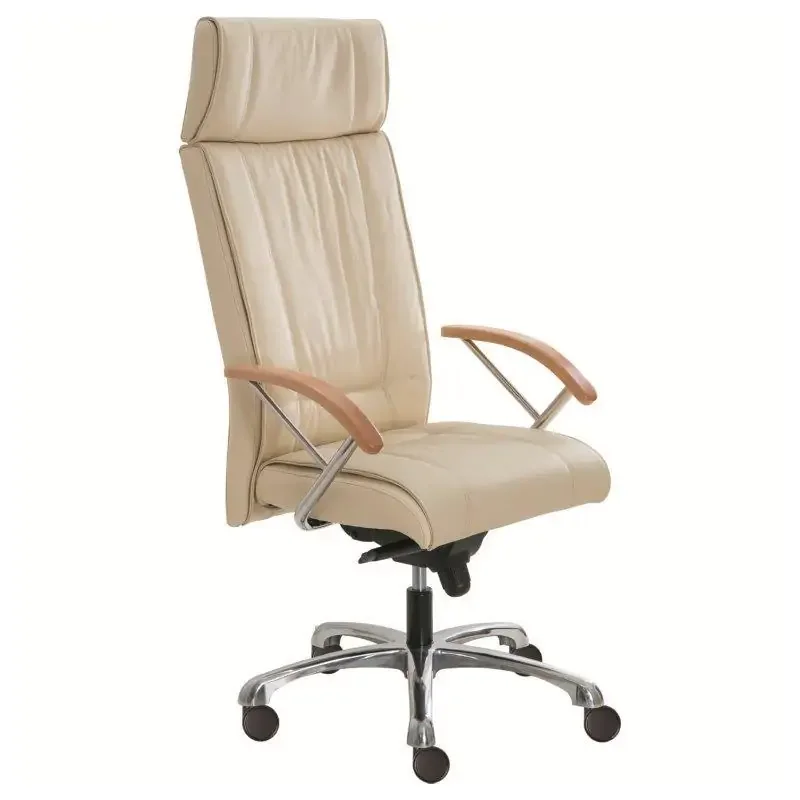 K základní výbavě patří pevný opěrák, chromované područky a plochý leštěný hliníkový kříž se 65 mm kolečky. Pro zdravotnické prostředí doporučujeme čalounění EXPO či Koženka, které jsou odolné proti biologickým materiálům a čisticím i dezinfekčním prostředkům. K dispozici je také volba barvy moření dřevěných područek. Dodáváme v demontu. Ergonomické sezení je podpořeno konstrukcí a materiály, které zajišťují dlouhodobou podporu při sezení. Toto křeslo je vhodné pro manažerské prostory a moderní kanceláře, nabízí kvalitní zpracování a dlouhou životnost.
