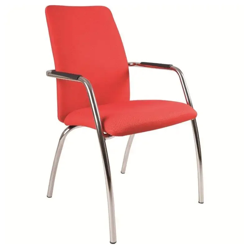 Elegantní stohovatelná konferenční židle s vysokým čalouněným opěradlem a chromovanou konstrukcí dodává zasedáním styl a šmrnc. Komfortní oporu zajišťují područky s plastovým toppem, které se pohodlně drží a usnadňují manipulaci po místnosti. Područky lze objednat i v dřevěném provedení v různých odstínech dřeva, čímž snadno sladíte židli s vaším interiérem. Záda židle jsou v základní variantě plastová, za příplatek však lze vybrat i čalouněný zadní panel pro vyšší komfort. Nosnost 120 kg a šířka sedáku 49 cm zaručují stabilní a pohodlné sezení pro široké spektrum uživatelů. Pro konference i každodenní zasedání představuje tato židle praktické a stylové řešení.