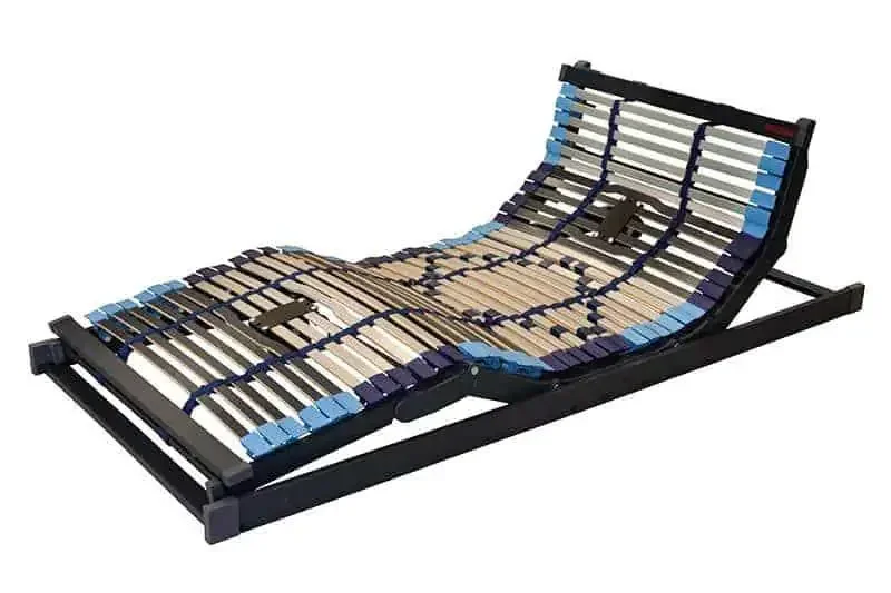 Masážní jednotky v těchto partiích a dva popruhy rovnoměrně rozprostírají vibrační podněty po celé ploše lůžka. 42 lamel je rozmístěno ve speciálních trio kapsách nad rámem a zajišťují pohodlné přizpůsobení tělu během spánku i masáže. Lůžko je rozděleno do 7 anatomických zón s možností regulace tuhosti v bederní oblasti. Konstrukce roštu umožňuje úložný prostor mezi postelí a podlahou; motor je ukryt v rámu a nezasahuje do prostoru pod spaním. Přídavná lišta rovnoměrně podpírá matraci a zabraňuje její deformaci. Povrch s foliovanou úpravou usnadňuje údržbu a chrání rošt proti vlhkosti. Ovládání je jednoduché: polohy roštu a masážních programů zvládnete jedním ovladačem a řídicí jednotka pod postelí má zelené světlo pro snadné použití i v noci. Nové infra ovládání umožňuje bezdrátové ovládání; pro správnou funkci musí být mezi postelí a zdrojem signálu volný prostor a není potřeba kabelů pro synchronizaci. Pokud máte ve stejné místnosti více roštů, lze synchronizovat dva z nich na stejné frekvenci prostřednictvím A/B signálu. Infra signály se nepřenášejí přes zeď, takže polohování v jedné místnosti neovlivní druhou.
