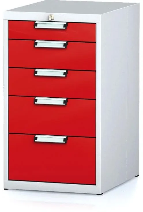 Praktický zásuvkový box na nářadí MECHANIC je ideální volbou pro profesionální i domácí dílny. Jeho robustní svařovaný korpus nabízí nosnost až 400 kg u stacionárních verzí a 80 kg u závěsných variant, což zajišťuje spolehlivost při každodenním používání. Čtyři zásuvky s centrálním zamykáním a nosností 40 kg jsou plně vysouvatelné na 100 %, což umožňuje snadný přístup ke všem nástrojům. Vnitřní příprava na instalaci kovových dělících prvků nabízí větší organizaci a přehlednost. Komfortní hliníkové madlo s drážkou pro popis usnadňuje manipulaci, zatímco nastavitelná police s nosností 40 kg, posuvná po 25 mm, nabízí flexibilitu při uspořádání uloženého nářadí. Tento box je perfektní volbou pro efektivní skladování a rychlý přístup k nástrojům, čímž výrazně zvyšuje pracovní efektivitu a pořádek ve vaší dílně.