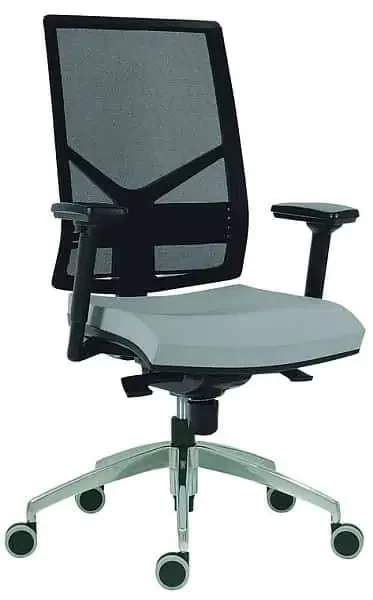 Moderní kancelářská židle s černým síťovaným opěrákem nabízí prodyšnou oporu a ergonomický design pro pohodlné sezení po celý den. Sedačka je vyplněna komfortní studenou pěnou a dle vzorníku lze zvolit barvu sedáku. Ve standardní výbavě nejsou zahrnuty područky, podhlavník ani ramínko a nosnost dosahuje 130 kg. Hlavní vlastnosti zahrnují nastavení výšky opěráku s mechanickým uzamykáním a synchronní mechanismus s pětinásobnou aretací, který umožňuje plynulou změnu úhlu sedáku a opěráku. Základ tvoří leštěná aluminiová báze a kolečka o průměru 65 mm pro tichý a jistý pohyb. Za příplatek lze vybrat mechaniku SL (sliding), která umožňuje vodorovné posunutí hloubky sedáku, nebo TL mechaniku s plynulým pohybem sedáku i opěráku a s několika aretacemi; TL zahrnuje také nastavení síly tlaku a posuv hloubky sedáku (SL) a 3 polohy úhlu sedáku, přičemž TL mechanika není kompatibilní s područkami AR 08 3D a AR 08 C 3D. Židle se dodává v demontu a je navržena tak, aby bylo možné ji snadno sestavit i na menším prostoru. Díky širokému spektru nastavení a kvalitní konstrukci je ideální volbou pro dlouhé pracovní směny, kdy oceníte podporu zad, stabilitu a pohodlí během celého dne.