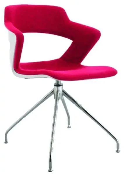 Moderní otočná konferenční židle s područkami a plastovým korpusem, inspirovaná stylem Aoki, nabízí pohodlný čalouněný sedák a opěrák. K dispozici je v široké paletě odstínů: