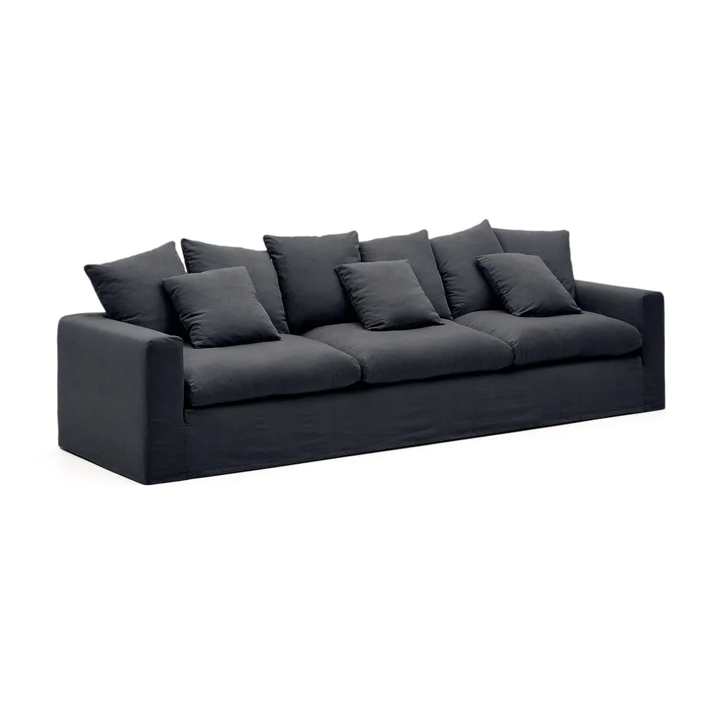 Antracitová lněná pohovka Nora 340 cm Pohovky a gauče