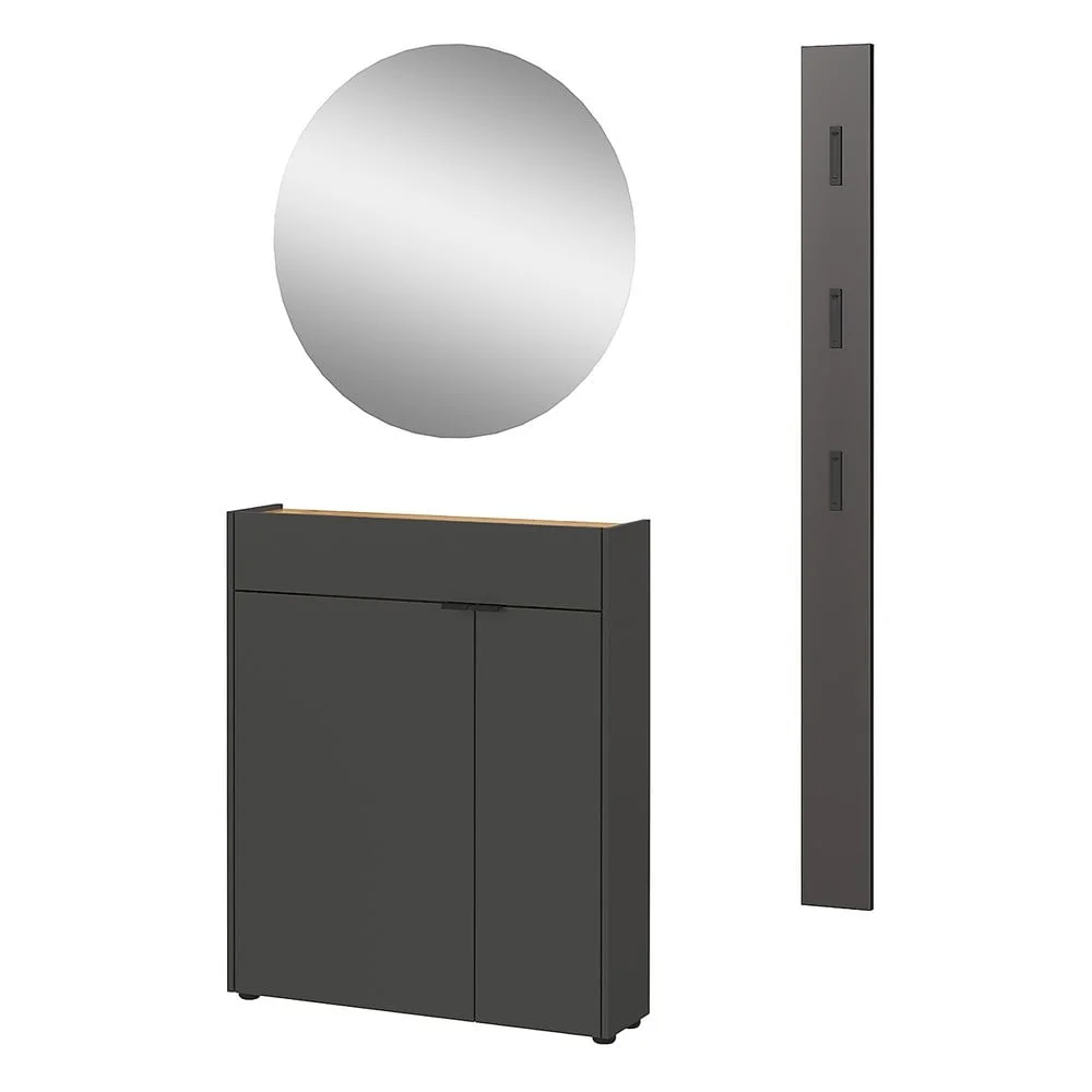 Moderní a praktická předsíňová sestava Ameca v elegantní antracitové barvě je ideálním řešením pro vaši vstupní halu. Sestava je složena z kulatého zrcadla o průměru 60 cm, které vám usnadní každodenní přípravu a úpravu vzhledu.