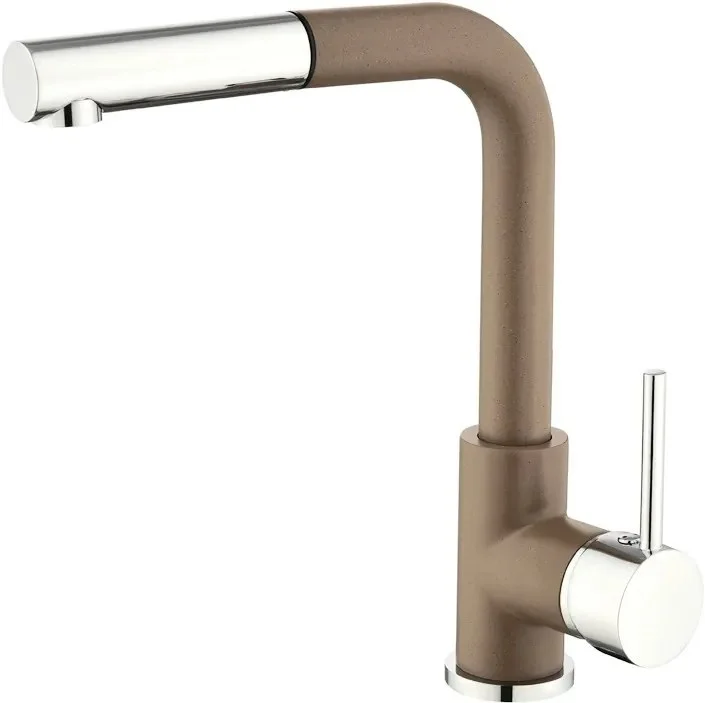 Elegantní tlaková vodovodní baterie v odstínu kávové barvy, která se pyšní praktickou vytahovací koncovkou pro snadnější manipulaci. S celkovou výškou 269 mm je ideální volbou pro moderní koupelny či kuchyně.