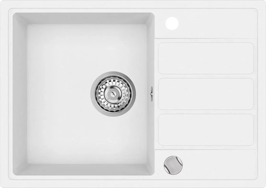 Elegantní spodní kuchyňská skříňka v bílé barvě s moderním excentrovým systémem, ideální pro efektivní využití prostoru. Skříňka nabízí výšku od 450 mm a je vybavena prostorným dřezem s rozměry 620 x 440 mm a hloubkou 170 mm, který je snadno instalovatelný na pracovní desku.
