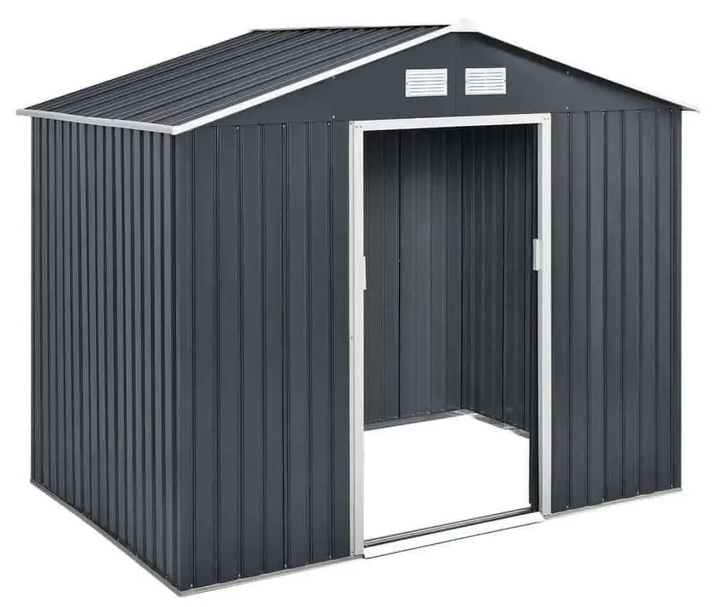 Dveře s dvojitou posuvnou konstrukcí umožňují pohodlný a rychlý vstup. Konstrukce je vyrobena z pozinkovaných ocelových plechů tloušťky 0,25–0,30 mm a rám z pozinkované oceli tloušťky 0,5–0,8 mm, což zajišťuje dlouhodobou odolnost vůči povětrnostním vlivům. Střecha unese až 60 kg sněhu na m2 a systém ventilačních mřížek zajišťuje dobrou cirkulaci vzduchu. Domek je dodáván bez podlahy a je vyveden v tmavě šedé barvě. Dodání probíhá v demontu; rozměry balení v demontu 171×71×12 cm a zastavěná plocha 3,67 m². Pro snadné převážení a montáž je ideálním řešením pro sezónní i stálé skladování a rychle získáte praktický úložný prostor, aniž by zabral hodně místa.