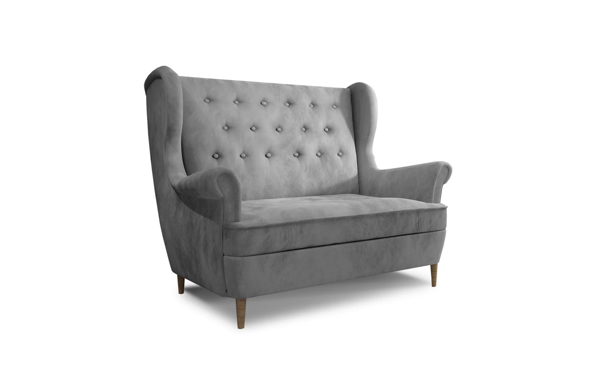 Aros od ELTAP představuje stylovou pohovku s kompaktními rozměry 150 × 90 × 103 cm, která okamžitě zaujme retro šarmem. Hlavní vizuální charakter tvoří čalouněné a dekorativně prošité opěradlo spolu s vysokými, soustruženými dřevěnými nohami a výraznými područkami.
