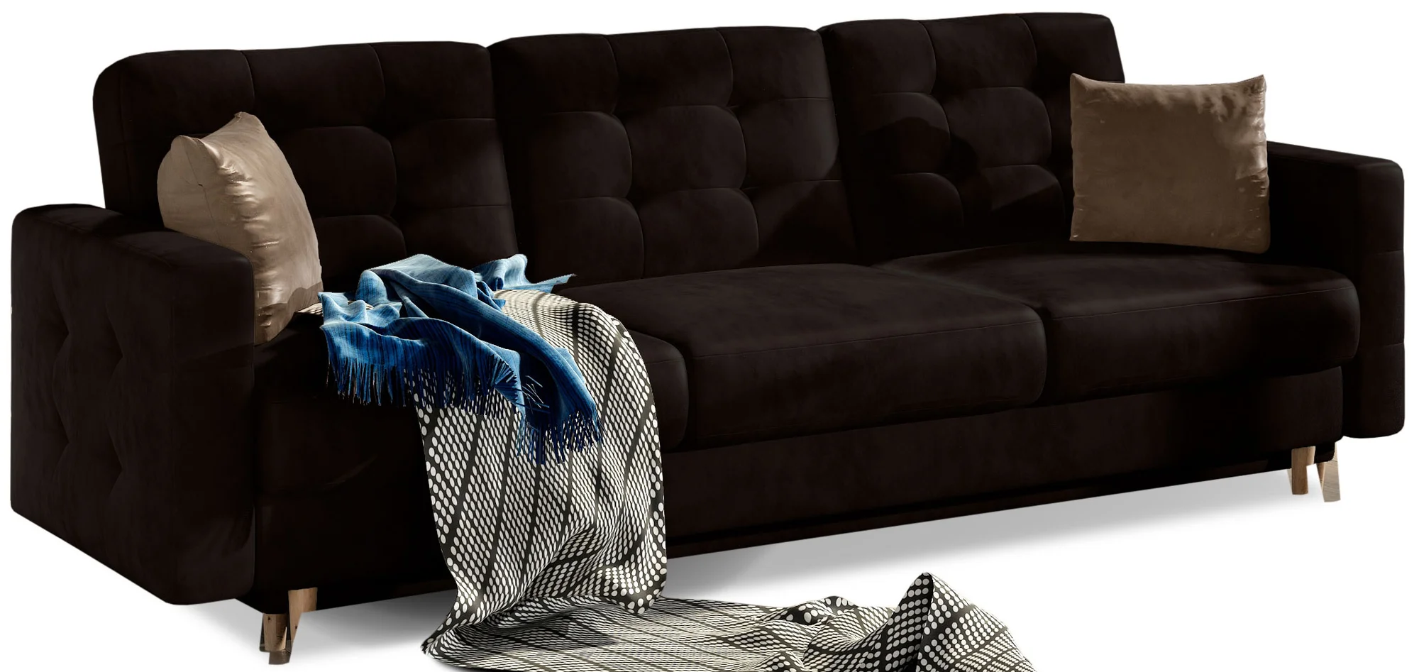 Pohovka Asgard kombinuje nadčasový design s klasickým tvarem a jemným prošíváním na polštářích i bocích, čímž vzniká elegantní a útulný vzhled každého interiéru. Rozměry 233 × 92 × 93 cm zajišťují pohodlné sezení a díky rozkládací funkci ji pohodlně proměníte na lůžko o rozměrech 133 × 196 cm pro hosty či večerní odpočinek.