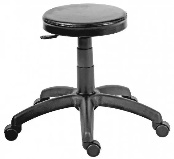 Pracovní taburet 1290 PU je určen pro dílny a dílenské prostředí. Sedák o průměru 32 cm je vyroben z polyuretanového materiálu, který zajišťuje pohodlí i odolnost při náročné práci. Plynový píst umožňuje plynulé nastavení výšky v rozmezí 41–54 cm. Základna taburetu je plastová, díky čemuž je stabilní a snadno udržovatelná. Ilustrační foto ukazuje pouze kluzáky; kolečka nejsou součástí balení. Tento taburet je vhodný pro rychlou úpravu výšky a pohodlné sezení během dílenských úkonů, čímž pomáhá zvyšovat efektivitu práce.