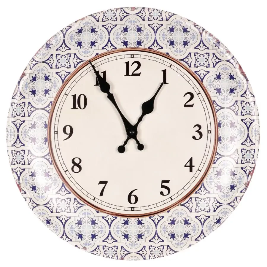 Elegantní kovové nástěnné hodiny o průměru 35 cm tvoří praktický doplněk každého interiéru. Vintage provedení dodává charakter a drobné nedokonalosti, jako šmouhy či patina, vnímejte jako stylový detail, ne jako vadu. Pro provoz stačí jedna baterie AA (není součástí balení); hodiny fungují bez složitého nastavování. Čitelný ciferník a kontrastní ručičky zajišťují čitelnost i z dálky. Pro inspiraci při sladění interiéru prohlédněte si i další bytové doplňky v naší nabídce. Návod k zavěšení - hodiny zavěšujte na pevnou skobu dostatečné síly a délky, vhodnou pro materiál vaší stěny; skoba není součástí balení. Hodiny jednoduše pověste za kovový zadní úchyt a ujistěte se, že jsou bezpečně zavěšeny, aby nedošlo k pádu.