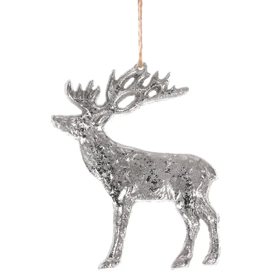Pořiďte si kovovou ozdobu jelena s jemným stříbrným leskem, která elegantně doplní vánoční výzdobu. Tato dekorace se bez problémů vměstná do tradičních i moderních stylů a stane se výrazným prvkem každé místnosti. Je vyrobena z pevného kovu, takže zvládne každoroční používání a dlouho vydrží. Ideálně se hodí na ozdobu vánočního stromku, ale díky svému neutrálnímu vzhledu skvěle doplní i jiné viditelné prvky vašeho interiéru a dodá mu zimní atmosféru.