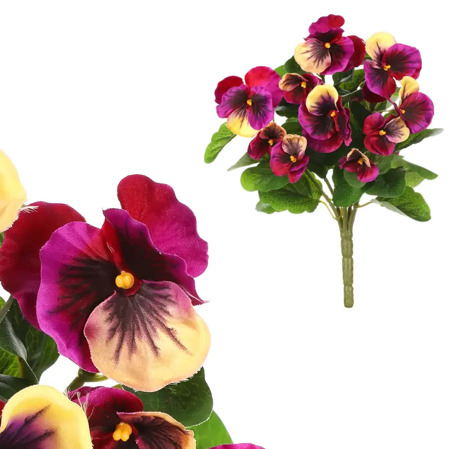 Ozdobte interiér či slavnostní okamžik jemnou nádechem přírodní romantiky a svěžesti díky umělým maceškám KT7128 v nádherné fialové barvě. Bezúdržbová výzdoba zůstává po dlouhou dobu svěží a nepřetržitě krásná, bez nutnosti zalévání či péče. Skvěle se hodí samostatně v váze, ale ještě lépe doplní aranžmá z naší pestré nabídky květin a doplňků. Vytvořte tak působivou dekoraci pro domov i pracovní prostor a užijte si stále svěží vzhled bez starostí.