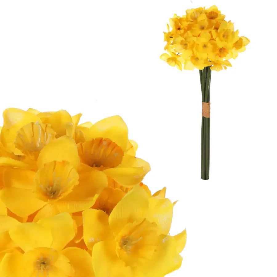 Umělá kytice žlutých narcisků KN7047 YEL nabízí svěží jarní vzhled, který nevyžaduje žádnou péči. Bezúdržbovost této dekorace znamená, že nikdy neuvadne a dlouhodobě si zachová jas i tvar. Pečlivé napodobeniny zachycují jemné detaily živé květiny a barva zůstává sytá i po dlouhé době. Kytici lze postavit samostatně jako stylový akcent do interiéru, nebo ji kombinovat s dalšími prvky pro efektivní aranžmá, které okouzlí každého. Oživí váš byt či kancelář a dodá mu nádech jara, aniž byste museli o dekoraci pečovat.