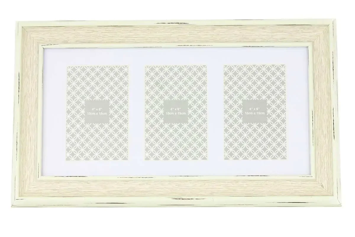 Praktický fotorámeček pro 3 fotografie určený pro snímky o velikosti 10 × 15 cm. Rozměry rámu činí 42 cm na šířku, 27 cm na výšku a 2,5 cm na hloubku, což umožňuje stabilní postavení na pracovním stole i polici. Stačí vložit tři fotografie a rám tvoří jednoduchý, ale elegantní doplněk interiéru. S čistým, neutrálním vzhledem se hodí do každé místnosti a rychle naladí atmosféru vašeho domova či kanceláře.