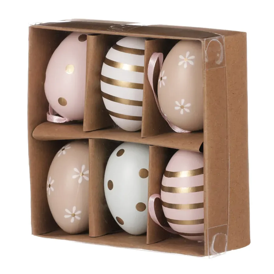 Klasická velikonoční dekorace z plastu dodá vašemu stolu svěží barvy a hravý nádech. Plastová vajíčka snadno začleníte do vázy spolu s větvičkami kočiček a na ně je zavěsíte – s označením VEL7001 vznikne originální aranžace. Sada obsahuje 6 kusů vajíček, které jsou dodávány v praktické krabičce pro snadné skladování. Díky odolným barvám zůstanou vajíčka krásná i při opakované výzdobě.