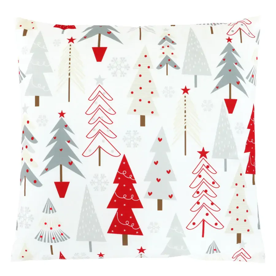 Polštář Autronic UBR101-1 v sametovém provedení zobrazuje motiv vánočních stromků v červené a šedé kombinaci. Rozměry 45 × 45 cm zajišťují kompaktní, ale komfortní doplněk do každého pokoje a snímatelný povlak usnadňuje údržbu.