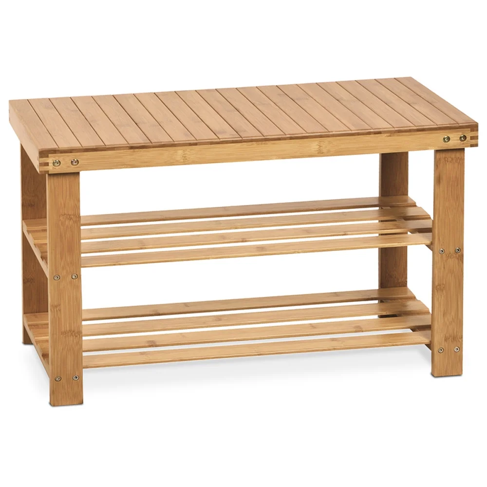 Praktický bambusový botník patří k nepostradatelnému vybavení každé předsíně i vstupní haly. Nabízí dvě odkládací police a pohodlnou sedací plochu pro rychlé obouvání. Jeho přírodní bambusový design působí elegantně a zároveň je odolný vůči vlhkosti, takže se hodí i do koupelny jako lavička na ručníky.