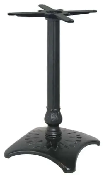 Barová podnož BC006/FF je litinová centrální podnož s čtvercovou základnou a kulatou trubkou, lakovaná černou barvou RAL 9005. K dispozici je i stolová varianta se stejným designem a stabilitou.