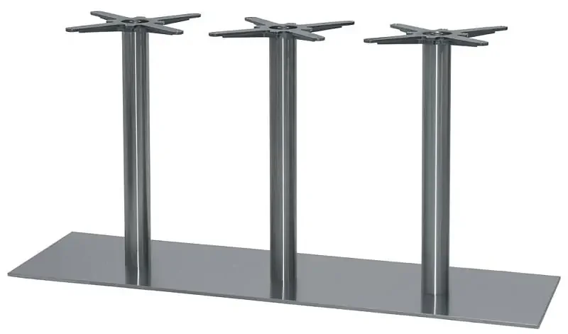 Provedení barové trojpodnože kombinuje hranatou obdélníkovou základnu s kulatými trubkami, čím vzniká pevná a stabilní konstrukce pro komerční provoz. Je vhodná pro prostory s vyšší zátěží, jako jsou restaurace, jídelny, kavárny a bary.