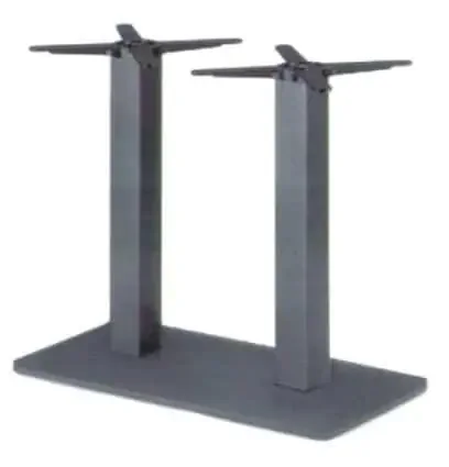 Provedení: centrální dvojpodnož z litiny s obdélníkovou základnou a hranatými trubkami 8x8 cm. Povrchová úprava v černé barvě RAL 9005 dodává elegantní vzhled a usnadňuje údržbu. Tuto podnož nabízíme i ve variantě pro jídelní desky.