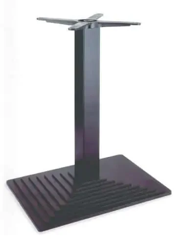 Barová podnož z litiny s centrální konstrukcí nabízí obdélníkovou základnu a hranatou trubku. Její povrch je černý podle RAL 9005, což zajišťuje nadčasový vzhled a vysokou odolnost vůči opotřebení.