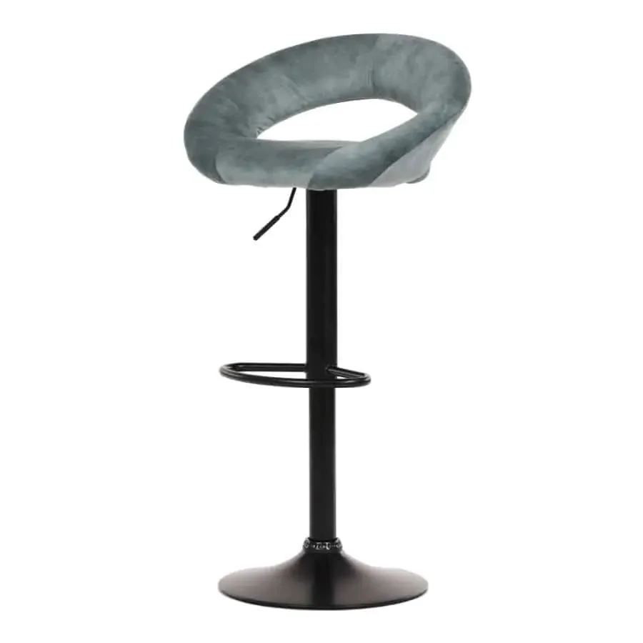 Stylová barová židle Autronic v modré sametové látce skvěle doplní každý barový pult. Sedák z jemného sametu doplňuje výškově nastavitelná podnož se stabilní kruhovou černou podstavou. Nastavitelná výška: 78–100 cm. Šířka sedáku: 33 cm.