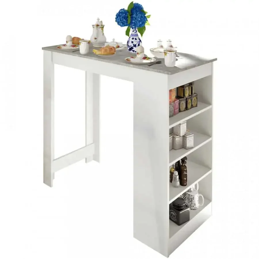 Barový stůl Austen kombinuje světlý dekor bílé dřevotřísky s industriálním vzhledem betonu, díky čemuž působí moderně a nadčasově. Deska má tloušťku 16 mm, což zajišťuje pevnost i dlouhou životnost.
