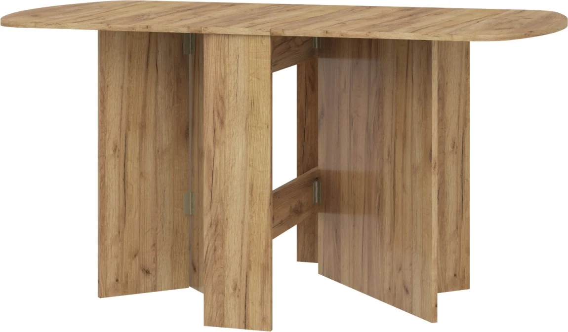 Unikátní design skládacího jídelního stolu BASHA 2 v provedení craft zlatý skvěle zapadne do menších jídelních koutů a zároveň nabídne prostornou plochu pro rodinné večeře. Deska je vyrobená z LTD o tloušťce 16 mm, což zaručuje pevnost a odolnost vůči každodennímu používání.
