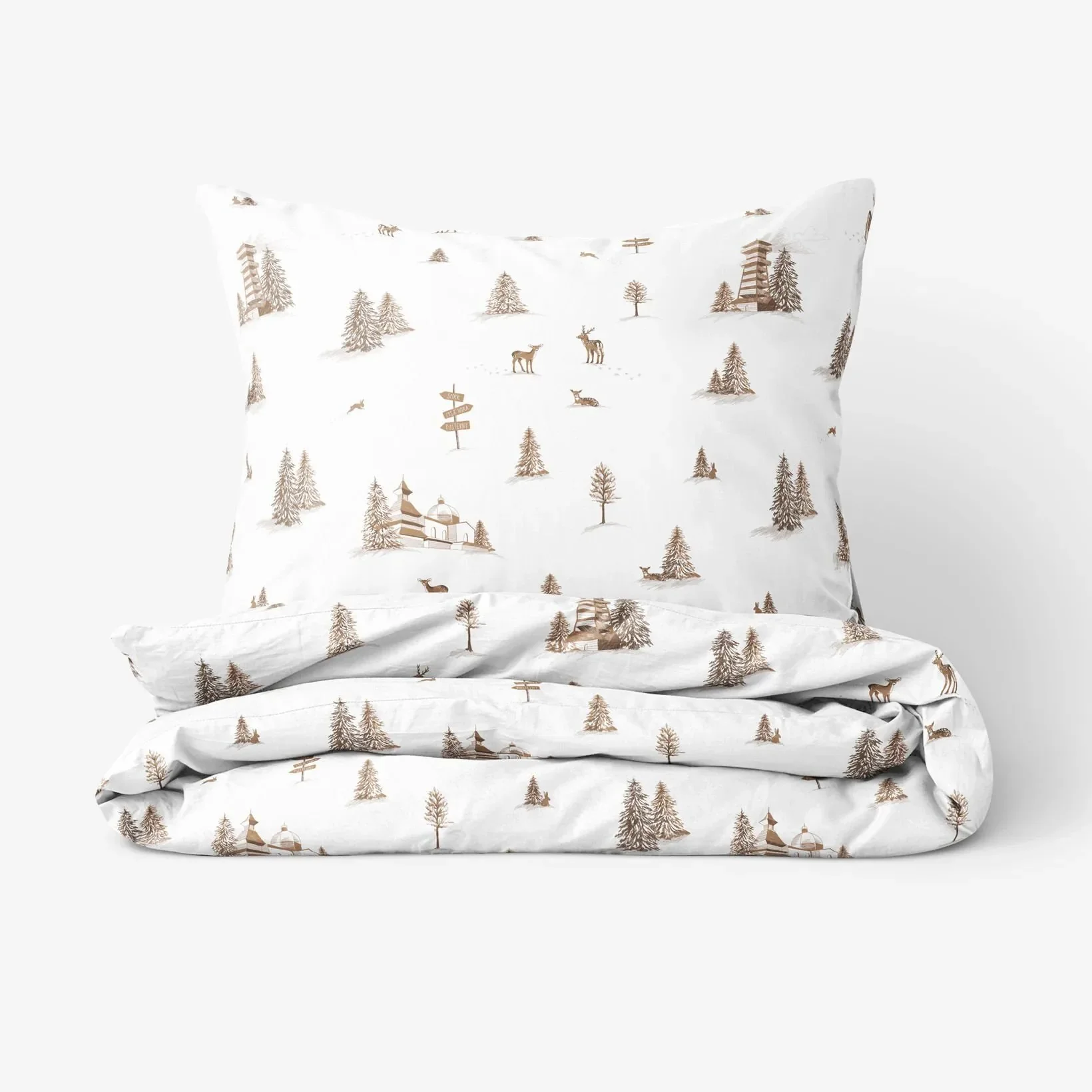 Přineste do své ložnice klidnou vánoční atmosféru s naším povlečením s motivy Beskyd, ručně kreslenými s láskou a péčí. Vyrobené z jemné 100% bavlny s gramáží 145 g/m², nabízí příjemný pocit na dotek a dlouhou životnost.