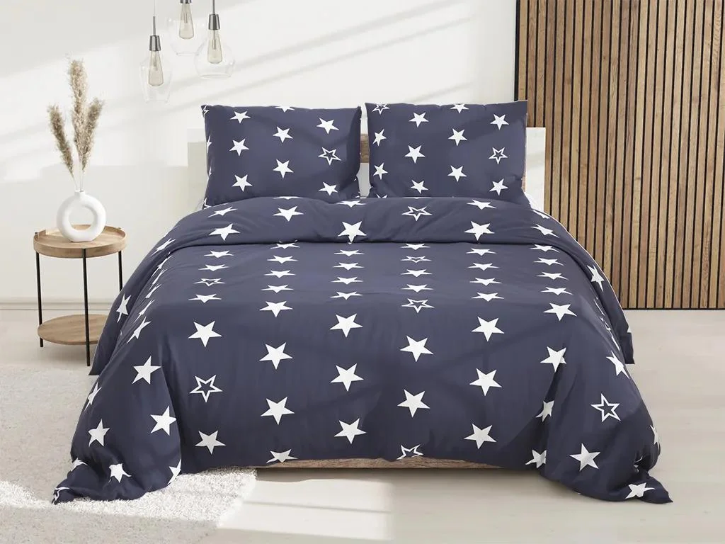 Hledáte kvalitní a stylové ložní prádlo? Naše bavlněné povlečení s motivem hvězd v tmavě modré barvě je ideální volbou pro ty, kteří ocení kombinaci tradiční kvality a moderního designu. Vyrobené z 100% bavlny s gramáží 130 g/m², nabízí příjemný pocit na dotek, vysokou prodyšnost a schopnost odvodu vlhkosti, což zajišťuje pohodlný spánek i při zvýšeném potu. Tento nadčasový odstín navíc harmonicky doplní každou ložnici, dodá jí útulnou atmosféru a podporuje klidné sny.