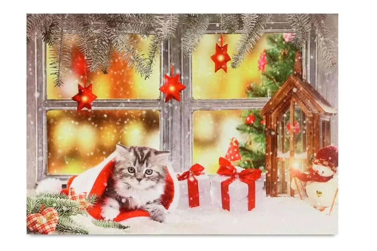 Nástěnná dekorace v podobě obrazu s jemným LED osvětlením, která dodá prostoru atmosféru. Rám je dřevěný, plátno je napnuto a vzadu je netkaná textilie pro pevné uchycení. Čtyři LED diody vytvářejí příjemné světlo; napájení zajišťují 2 baterie AA (nejsou součástí balení). Rozměry: 40 × 30 × 1,8 cm. Vintage provedení s patinou; drobné trhliny a šmouhy nejsou vadou, ale záměrnou součástí vzhledu, která dodává obrazu autentický vintage půvab.