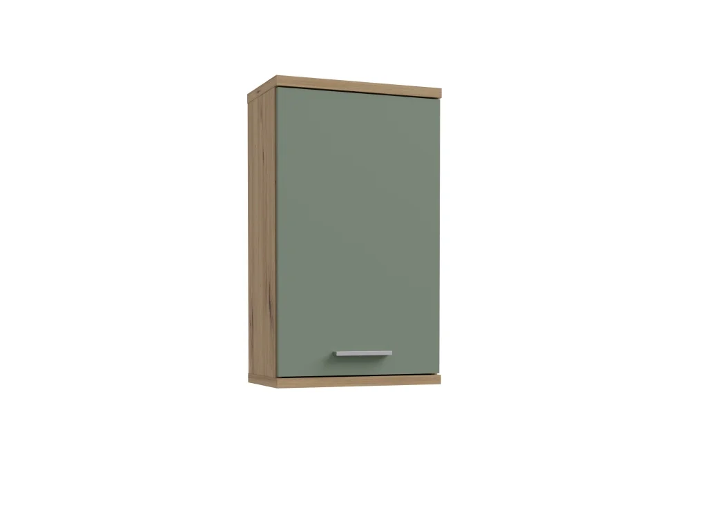 Koupelnová horní skříňka s praktickým úložným prostorem má rozměry 40,2 x 68,8 x 23,2 cm (š x v x h). Je vyrobená z lamino o tloušťce 15/22 mm. Korpus je v odstínu dub artisan a dvířka v odstínu šalvěj, s plastovým úchtem pro pohodlné a tiché otevírání. Dodáváno v demontu. Tato skříňka je ideálním řešením pro efektivní využití prostoru a snadnou údržbu, protože povrch je odolný vůči vlhkosti a snadno se čistí. Díky svému modernímu vzhledu se hodí do různých koupelnových stylů a zvládne každodenní zátěž.