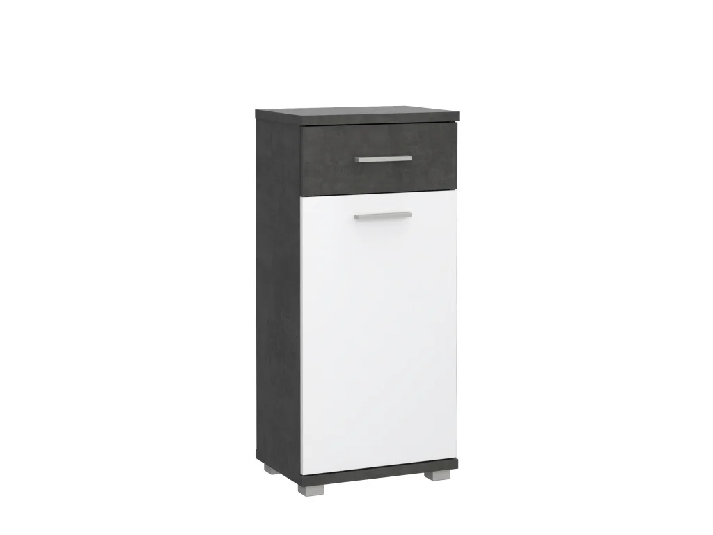 Praktická spodní skříňka do koupelny nabízí rozměry 40,2 × 87,6 × 28,9 cm a poskytuje efektivní úložný prostor. Lamino s tloušťkou 15/22 mm zaručuje odolnost a stabilitu. Korpus je v odstínu tmavě šedý beton a dvířka kombinují tmavě šedý beton s bílým leskem, čímž vzniká moderní kontrast. Dodáváno v demontu a připravené k rychlé montáži; na tuto skříňku se vztahuje 5letá záruka.