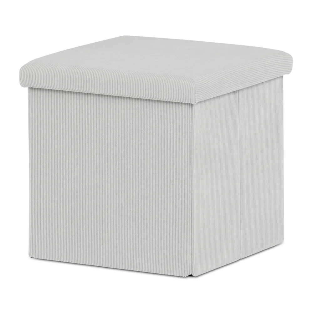 Elegantní čtvercový taburet BELBELIV s úložným prostorem se hodí do moderních bytů. Potah z krémové manšestrové látky dodává jemný lesk a příjemný dotek, zatímco materiál působí útulně.