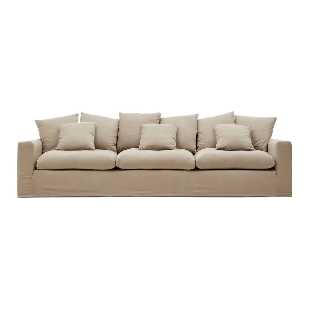 Elegantní béžová pohovka Nora v délce 340 cm je ideálním doplňkem moderního obývacího pokoje. Vyrobena z kvalitního lněného materiálu, který je nejen stylový, ale také příjemný na dotek. Péče o tuto pohovku je jednoduchá – při čištění postačí jemné ruční ošetření s použitím vhodného rozpouštědla, a vyhýbejte se bělení nebo sušení v sušičce, aby nedošlo ke srazení tkaniny. Pro zachování jejího vzhledu doporučujeme žehlení na střední teplotu.