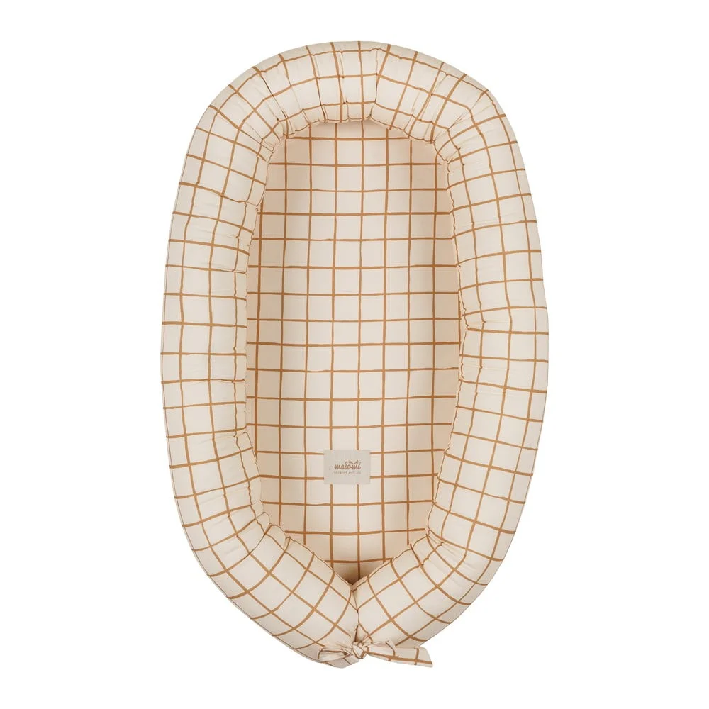 Béžové dětské hnízdečko Camel Check od Malomi Kids Hnízdečka pro miminka