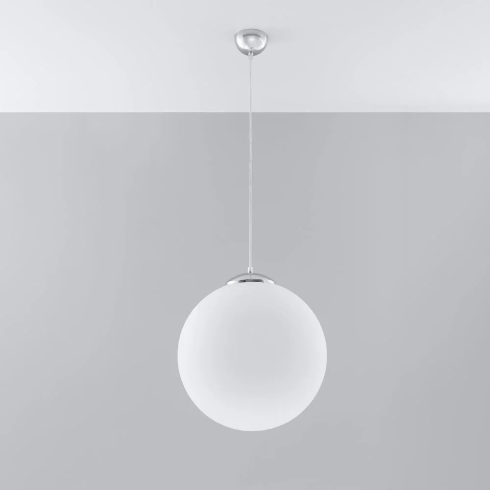 Moderní závěsné svítidlo Bianco v elegantní bílé barvě je ideální pro osvětlení jakéhokoliv interiéru. Jeho velké skleněné stínidlo o průměru 40 cm vytváří příjemné a rozptýlené světlo, které dodá místnosti útulnou atmosféru.