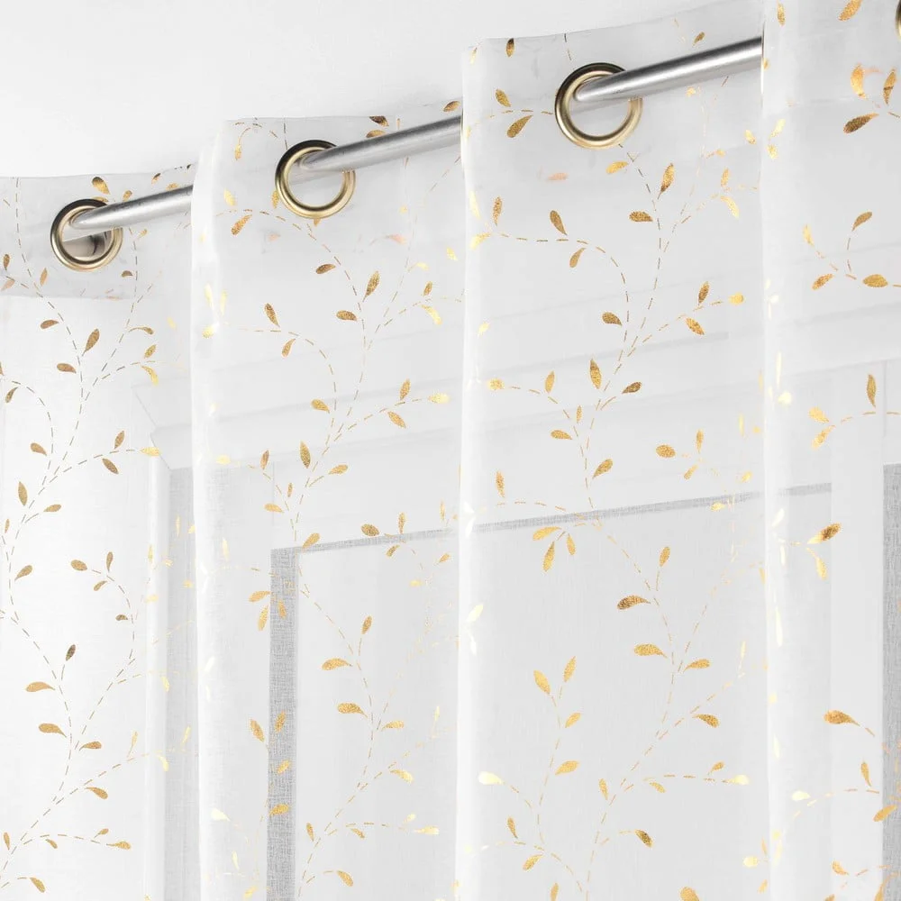 Bílá a zlatá voálová záclona 140x240 cm Floressia Záclony