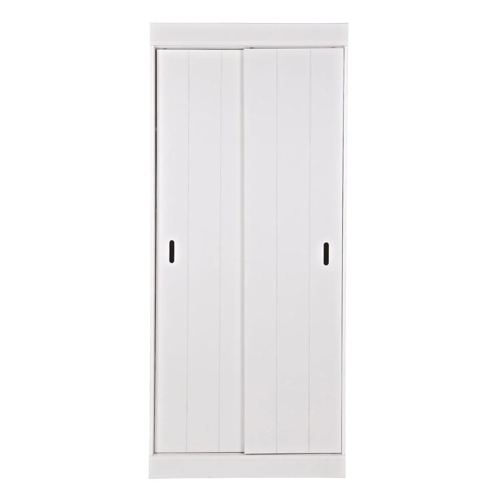 Bílá borovicová šatní skříň s posuvnými dveřmi 85x195 cm Row Šatní skříně