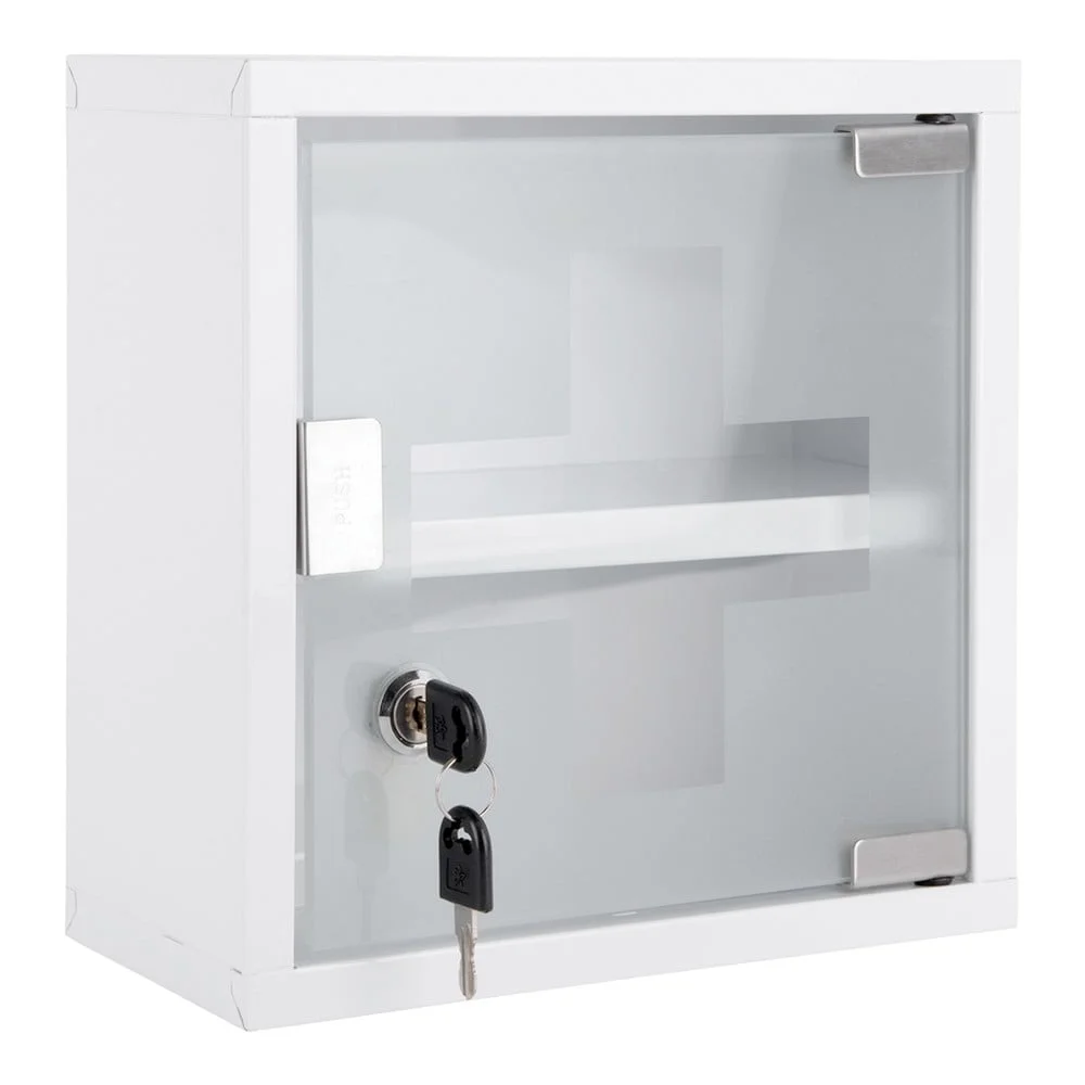 Praktická bílá kovová závěsná skříňka o rozměrech 12x25 cm je ideálním řešením pro uspořádání vašich léků a zdravotnických potřeb. Díky její konstrukci snadno zavěsíte na zeď a udržíte přehled v lékárně nebo koupelně.
